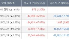 [장중수급포착] 삼표시멘트, 외국인 7일 연속 순매수행진... 주가 +1.61%