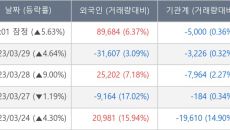 [장중수급포착] 한국제11호스팩, 외국인 35,618주 대량 순매수... 주가 +6.36%
