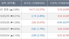 [서울=뉴스핌] 로보뉴스 = 30일 10시 15분 현재 인성정보(033230)는 외국인이 19.19만 주 대량으로 순매수(잠정- 2023-03-30 10:20