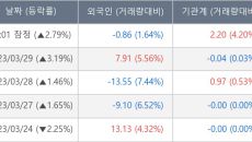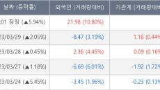 [서울=뉴스핌] 로보뉴스 = 30일 10시 15분 현재 어보브반도체(102120)는 외국인이 21.98만 주 대량으로 순매수(- 2023-03-30 10:19