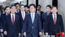 김기현 국민의힘 대표를 비롯한 당 지도부가 30일 서울 여의도 국회에서 열린 최고위원회의에 참석하고 있다. 사진=김현민 기자- 2023-03-30 09:58