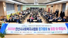 이민근 시장과 송바우나 안산시의회의장, 황인득 신임회장과 이경우 4대 회장, 관내 사회복지기관장 등 130여 명이 참석한 가운- 2023-03-30 08:47