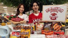 29일 서울 용산구 이마트 용산점에서 모델들이 ‘신세계그룹 2023 랜더스 데이’를 맞아 한우, 계란, 가공 식품, 생필품 등- 2023-03-30 02:07