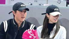 황재균♥지연, 신혼부부의 달달 배구장 데이트..커플 모자까지 [Oh!쎈 이슈]