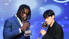 [ST포토] 자밀 워니-김선형 '짜릿한 트로피 키스'