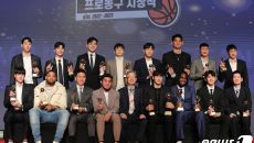 기념촬영하는 프로농구 시상식 수상선수들