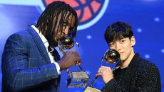 자밀 워니-김선형 'MVP 트로피 키스'[포토]