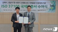(수원=뉴스1) 최대호 기자 = 경기 수원시가 영국 표준협회(BSI)로부터 스마트도시 국제표준(ISO37106) 인증서를 받았- 2023-03-30 15:53