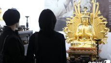 (서울=뉴스1) 박세연 기자 = 30일 서울 강남구 세텍(SETEC)에서 열린 2023 서울국제불교박람회를 찾은 관람객이 전시- 2023-03-30 15:11