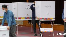 사전투표소 준비하는 관계자들