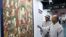 (서울=뉴스1) 박세연 기자 = 30일 서울 강남구 세텍(SETEC)에서 열린 2023 서울국제불교박람회를 찾은 스님이 전시된- 2023-03-30 15:03