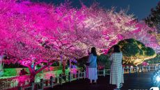 (광양=뉴스1) 서순규 기자 = 포스코 광양제철소 주택단지 내 4300여 그루의 벚꽃이 30일 만개해 형형색색의 조명과 어우러- 2023-03-30 14:40