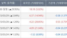 [서울=뉴스핌] 로보뉴스 = 30일 14시 35분 현재 알파홀딩스(117670)는 외국인이 22.75만 주 대량으로 순매수(잠- 2023-03-30 14:35