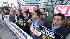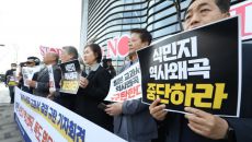 '역사 왜곡 교과서 규탄' 일본대사관 앞 기자회견