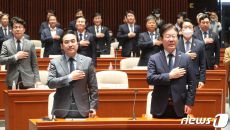 국민의례하는 이재명 대표