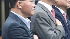 (서울=뉴스1) 허경 기자 = 윤재옥·김학용 국민의힘 의원이 30일 서울 여의도 국회에서 열린 의원총회에서 국민의례를 하고 있- 2023-03-30 14:03