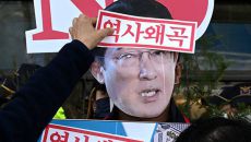 "역사왜곡 NO" 일본대사관 앞 '왜곡 교과서' 규탄하는 시민단체 [TF사진관]