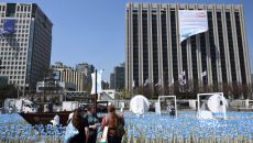 엑스포 실사단 방한 앞두고 광화문광장 엑스포 유치 열망 알리기 위해 변신중