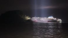 (신안=뉴스1) = 19일 오후 8시 16분쯤 전남 신안군 장산면 족도에 260여명이 탑승한 여객선이 좌초돼 해경이 구조 작업- 2025-11-19 21:33