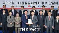 [더팩트ㅣ박헌우 기자] 최태원 대한상공회의소 회장이 19일 오전 서울 중구 대한상공회의소에서 열린 '국민의힘-대한상공회의소 정- 2025-11-19 11:48