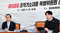 [더팩트 | 국회=배정한 기자] 한준호 더불어민주당 정치검찰조작기소대응특위 위원장(오른쪽)이 19일 오전 서울 여의도 국회에서- 2025-11-19 11:29