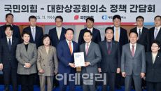 [이데일리 김태형 기자] 최태원(앞줄 왼쪽 다섯번째부터) 대한상공회의소 회장이 19일 서울 중구 대한상공회의소에서 열린 '국민- 2025-11-19 11:26