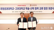[포항=뉴시스]송종욱 기자 = 포스텍은 고려대학교와 지난 18일 교육·연구·창업·의료 등 분야의 협력을 위한 협정(MOU)을- 2025-11-19 11:26