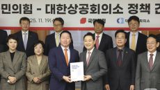 (서울=뉴스1) 박지혜 기자 = 최태원 대한상공회의소 회장이 19일 서울 중구 대한상공회의소에서 열린 '국민의힘-대한상공회의소- 2025-11-19 11:07