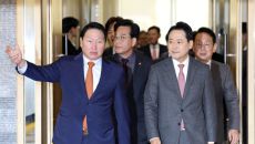 최태원 대한상공회의소 회장이 19일 서울 중구 대한상공회의소에서 열린 '국민의힘-대한상공회의소 정책간담회'에 참석해 장동혁 국- 2025-11-19 10:59