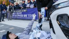 민주노총 금속노조 한국지엠지부 조합원들이 19일 서울 영등포구 쉐보레 서비스센터 앞에서 한국지엠의 한국 철수 신호탄인 직영 정- 2025-11-19 20:42