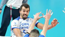 (엑스포츠뉴스 장충, 김한준 기자) 19일 오후 서울 장충체육관에서 열린 '진에어 2025-2026 V-리그' 우리카드와 삼성- 2025-11-19 20:17