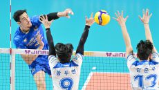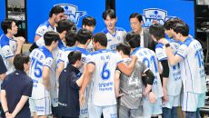 (엑스포츠뉴스 장충, 김한준 기자) 19일 오후 서울 장충체육관에서 열린 '진에어 2025-2026 V-리그' 우리카드와 삼성- 2025-11-19 19:53