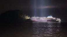 (신안=뉴스1) = 19일 오후 8시 16분쯤 전남 신안군 장산면 족도에 260여명이 탑승한 여객선이 좌초돼 해경이 구조 작업- 2025-11-19 23:15