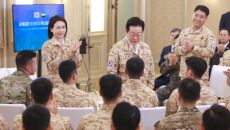 UAE 파견 아크부대 장병들 만나 격려 "부대 가려 했는데 오지 마라 해" 농담 모래색 군복 상의 차림으로 유대 표해 김 여사- 2025-11-19 18:44