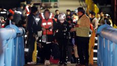 (목포=뉴스1) 박지현 기자 = 전남 신안 해상에서 좌초된 여객선 퀸제누비아2호 탑승객들 19일 밤 전남 목포해양경찰서 전용- 2025-11-19 23:54