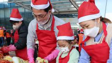 (대전=뉴스1) 김기태 기자 = 19일 대전 동구청에서 열린 천사의손길 김장나눔대축제에서 박희조 동구청장이 봉사자들과 함께 김- 2025-11-19 15:33