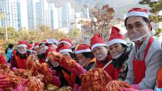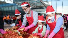(대전=뉴스1) 김기태 기자 = 19일 대전 동구청에서 열린 천사의손길 김장나눔대축제에서 박희조 동구청장이 봉사자들과 함께 김- 2025-11-19 15:31