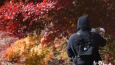 19일 서울 남산을 찾은 시민이 반려견과 함께 단풍이 물든 나무 아래를 오가고 있다. ※CBS노컷뉴스는 여러분의 제보로 함께- 2025-11-19 15:16