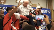 '벤투 경질' UAE 꺾은 이라크 축제 분위기! 40년 만 WC 눈앞→기자회견 난입+감독 헹가래