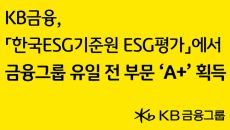 KB금융, 한국ESG기준원 ESG평가에서 전부문 A+ 획득