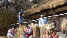초가지붕 이엉 잇기 작업 한창인 한국민속촌