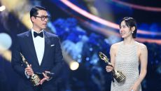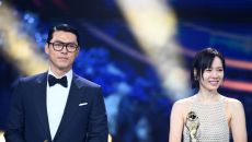 제46회 청룡영화상 시상식이 19일 여의도 KBS홀에서 열렸다. 청정원 인기 스타상을 수상한 현빈, 손예진이 기뻐하고 있다.- 2025-11-19 21:54