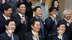 (대구=뉴스1) 공정식 기자 = 정청래 더불어민주당 대표(앞줄 가운데)가 19일 대구 수성구 스피어AX에서 열린 '수성알파시티- 2025-11-19 12:59