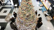 16일 대구대학교 경산캠퍼스 창파도서관에서 학생들이 크리스마스를 앞두고 설치된 ‘북(Book) 트리’에 소원지를 붙이고 있다.- 2025-12-17 01:08