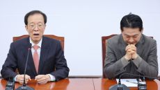 이석연 국민통합위원장(왼쪽)이 16일 국회에서 장동혁 국민의힘 대표를 만나 발언하고 있다. 이날 이 위원장은 장 대표에게 “다- 2025-12-17 01:06