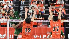 [OSEN=부산, 이석우 기자] 17일 부산 강서실내체육관에서 진에어 2025-2026 V리그 남자부 OK저축은행과 우리카드의- 2025-12-17 21:18