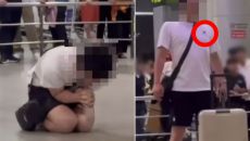 "여성 더듬다 공안에 끌려가"...'태극기 티셔츠' 男 공항서 오열
