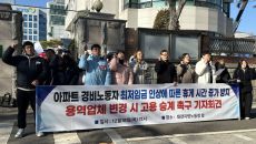 [대전=뉴시스]김도현 기자 = 대전 지역 시민단체가 아파트 경비 노동자 휴게 시간 증가 방지와 용역업체 변경 시 고용 승계를- 2025-12-18 11:38