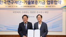 한국연구재단은 17일 본원에서 기술보증기금(이하 기보)과 국가 연구개발(R&D) 우수성과 확산 및 기술사업화 촉진을 위한 업무- 2025-12-18 10:54