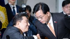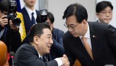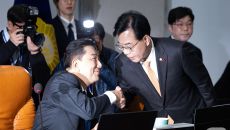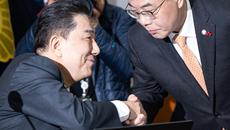 (서울=뉴스1) 유승관 기자 = 김병기 국회 운영위원장(더불어민주당 원내대표)과 송언석 국민의힘 원내대표가 18일 서울 여의도- 2025-12-18 10:38